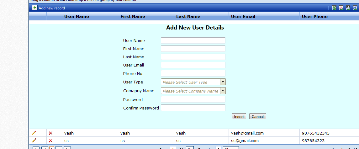 protected void RadGrid1_ItemDataBound(object sender, GridItemEventArgs e) { if (e.Item is GridEditableItem) { GridEditableItem edit = (GridEditableItem)e.Item; RadComboBox cmbUserType = (RadComboBox)edit.FindControl("cmbusertype"); DataTable dt1 = ObjGlobas.UserType(); cmbUserType.DataSource = dt1; cmbUserType.DataTextField = "UserType"; cmbUserType.DataValueField = "UserTypeId"; cmbUserType.DataBind(); } }5 Answers, 1 is accepted