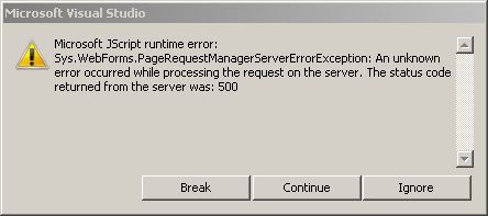 Microsoft JScript runtime error: Sys.WebForms.PageRequestManagerServerErrorException: An unknown error occurred while processing the request on the server. The status code returned from the server was: 500Even it is working proper when I put "aa>" or "<>".