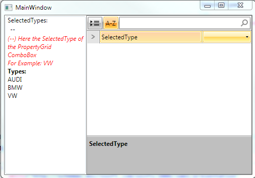 The PropertyGrid should provide a ComboBox to edit the “SelectedBrand” and should hide the “Brands”.