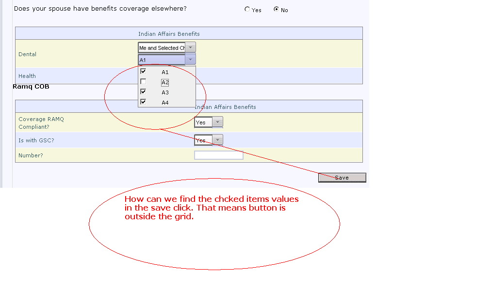 <telerik:RadGrid ID="RadGrid1" runat="server" Width="100%" ShowStatusBar="true" AutoGenerateColumns="true" PageSize="10" AllowSorting="True" AllowMultiRowSelection="False" AllowPaging="True" OnNeedDataSource="RadGrid1_NeedDataSource" Skin="MyCustomSkin" EnableEmbeddedSkins="false" OnItemDataBound="RadGrid1_ItemDataBound" OnItemCreated="RadGrid1_ItemCreated"> <PagerStyle Mode="NumericPages"></PagerStyle> <MasterTableView AutoGenerateColumns="false"> <Columns> <telerik:GridTemplateColumn HeaderText="Indian Affairs Benefits" ItemStyle-Width="90px" UniqueName="IndianAffairsBenefits"> <ItemTemplate> <telerik:RadComboBox Skin="Inox" ID="ddOnelChild" runat="server" EnableEmbeddedSkins="False" MarkFirstMatch="True" Width="120px" Visible="false"> </telerik:RadComboBox> <telerik:RadComboBox Visible="false" Skin="Inox" ID="ddlMeAndSelectedChildren" runat="server" EnableEmbeddedSkins="False" MarkFirstMatch="True" Width="120px"> <ItemTemplate> <asp:CheckBox ID="chkbx" Checked="true" runat="server" /> <asp:Label runat="server" ID="lblItem" AssociatedControlID="chkbx"> <%# Eval("Namess") %> </asp:Label> </ItemTemplate> <CollapseAnimation Type="OutQuint" Duration="200" /> </telerik:RadComboBox> </ItemTemplate> </telerik:GridTemplateColumn>