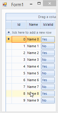 The column I am replacing has a Yes or No value, and I want the button to have the current value of the cell written on it. Pressing the button needs to change the textto the other value, as well as save it in the database.