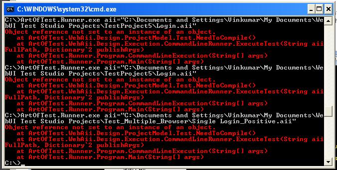 at ArtOfTest.WebAii.Design.Execution.CommandLineRunner.ExecuteTest(String aiiFullPath, Dictionary`2 publishArgs)