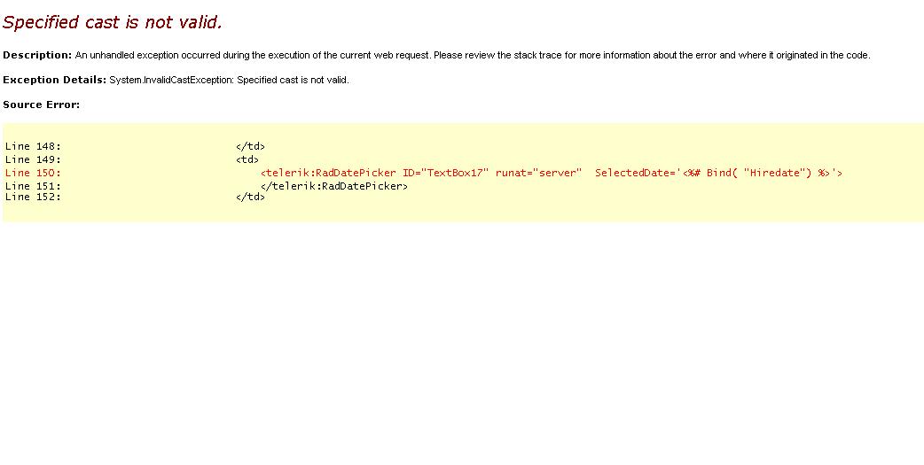 .I have the attached error...plz let me know wats causing this issue..Am i missing casting anywhere...all I declared is date time..