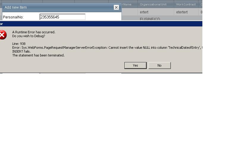 My edit is working fine...but the add button...which appears when I Give Commanditemdisplay is not l working..It says the specific cast is Invalid...once I remove the date fields then i get the add button working...