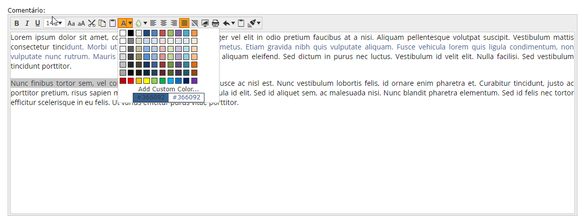 This is my RadEditor with the options I need enabled. Right now, my browser has its zoom at 100%. When I click to change the color of the text or my back color, it shows up just fine under the icon. Plus, choosing the colors changes the text as it should.
