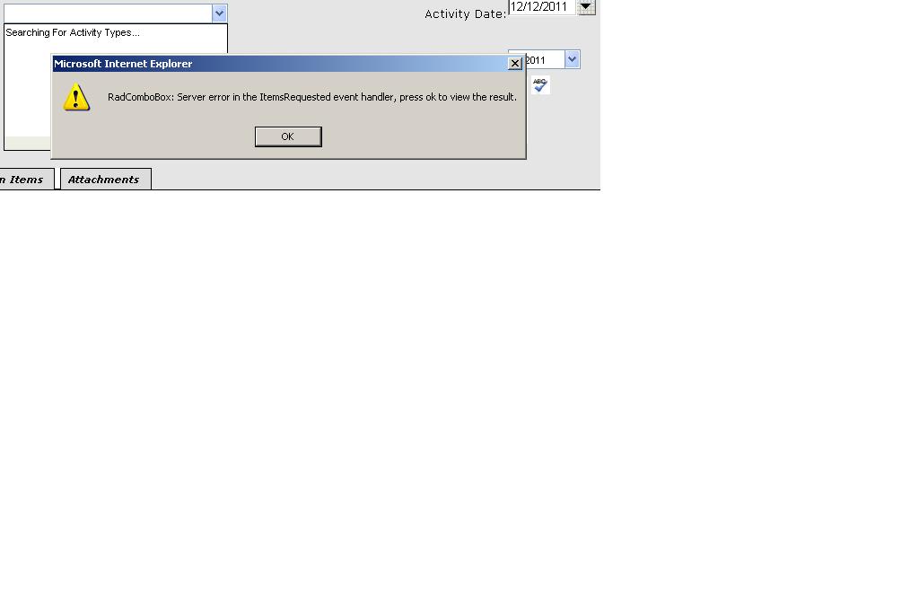 "RadcomboBox: Server error in the ItemRequested event handler.press ok to view the result "