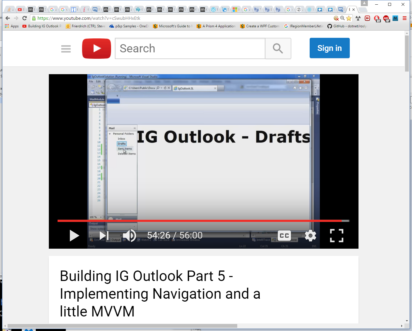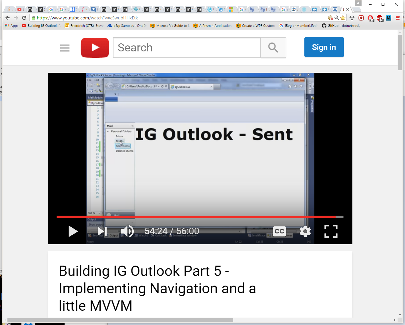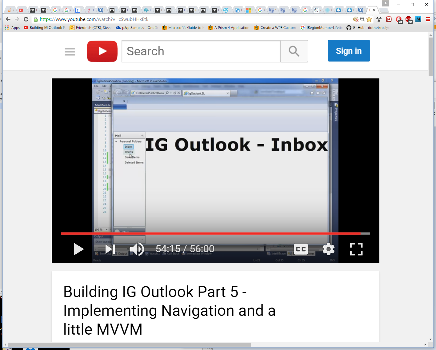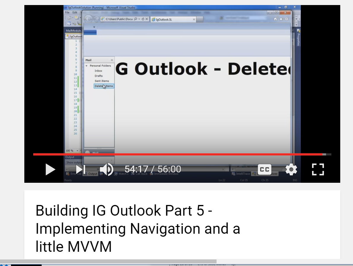 The solution posted corresponds to video Building IG Outlook Part 5 - Implementing Navigation and a little MVVM,