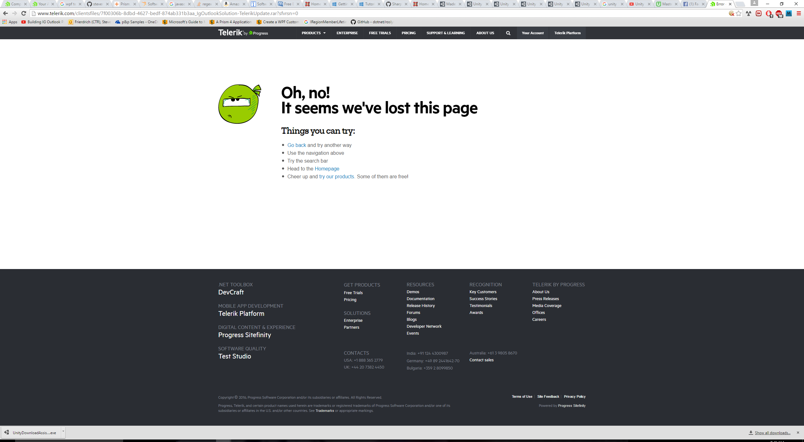 I Clicked on the link the IgOutlookSolution-TelerikUpdate.rar a webpage is displayed showing the page is lost.