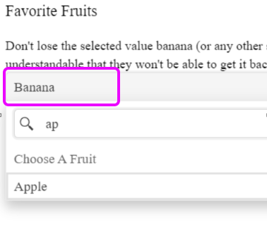 I have a request for a group of dropdown lists with complex filtering in the lists. The issue is that they don't want any previously selected options to be erased when filtering. My actual list can have thousands of options but for the sake of example I'm going to make it shorter: