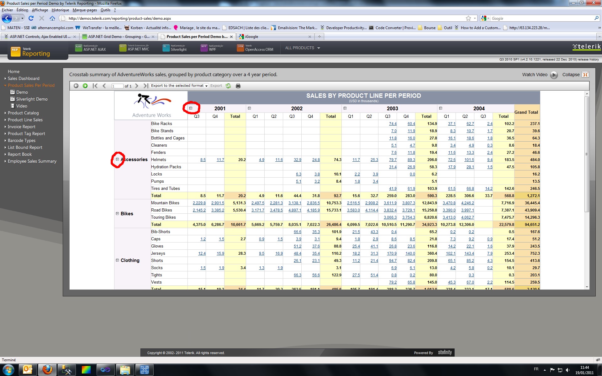 This is a Drilldown Report Action. The CrossTab demo is part of the demos that came with your installation of Telerik Reporting. (Start -> All Programs -> Telerik -> Reporting Q3 2010 -> Visual Studio Examples ). In the concrete example we have added a Drilldown action that toggles a Table Group's visibility.
