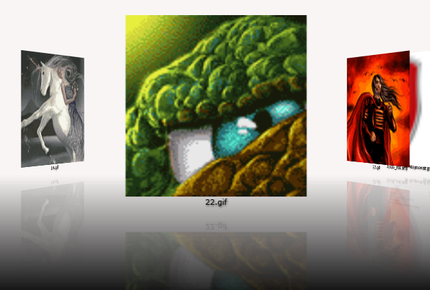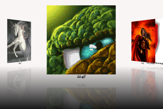 <telerikNavigation:RadCoverFlow Margin="0,28,0,0" VerticalAlignment="Top" x:Name="RadFlowPict" OffsetX="0" OffsetY="100" ReflectionOpacity="0.4" ReflectionHeight="0.4" ItemScale="0.6" RotationY="55" DistanceBetweenItems="30" DistanceFromSelectedItem="5" CameraViewpoint="Center" ItemChangeDelay="00:00:01" SelectionChanged="RadFlowPict_SelectionChanged"> <telerikNavigation:RadCoverFlow.Background> <LinearGradientBrush EndPoint="0.5,1" StartPoint="0.5,0"> <GradientStop Color="#FF121212" Offset="1"/> <GradientStop Color="#FFFAF6F6" Offset="0.60"/> </LinearGradientBrush> </telerikNavigation:RadCoverFlow.Background> </telerikNavigation:RadCoverFlow>My code:
