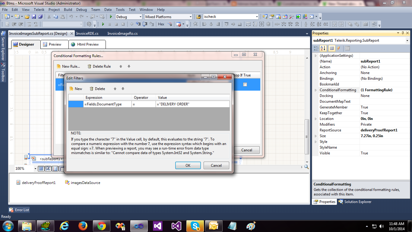 i want that Sub Report Visibility is false when Document Type = "DELIVERY ORDER".