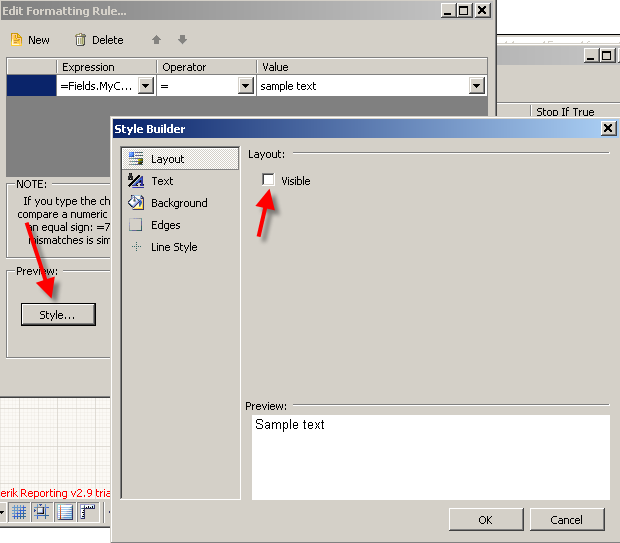 What does this mean? My data source consists of a single table and all the fields referenced in the conditional formatting expression are members of that table. Here's my condition, which is the same as it was in the snapshot above: