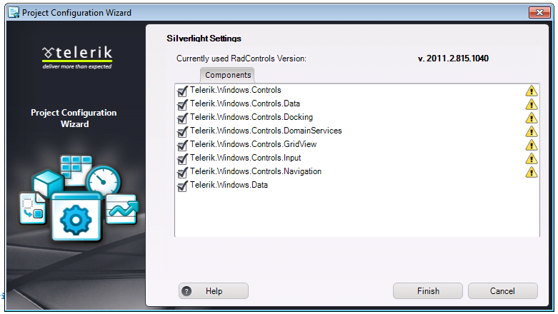 It would be nice to be able to open up the Telerik Silverlight Project Config and add/remove telerik DLL references