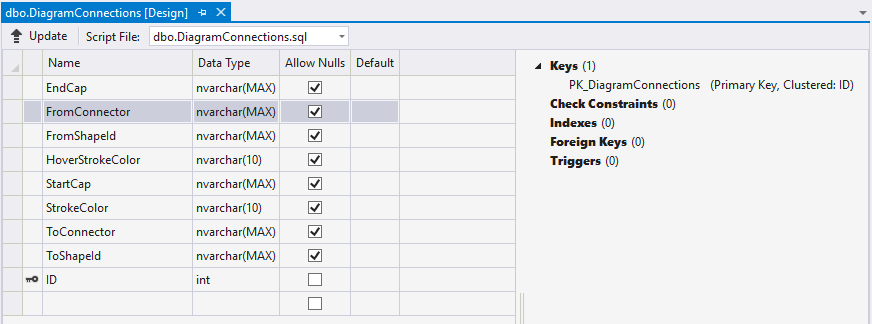In addition, you can download the whole demos application and examine the used DiagramShapes and DiagramConnecions tables of the used Telerik.mdf database form your Telerik account here: