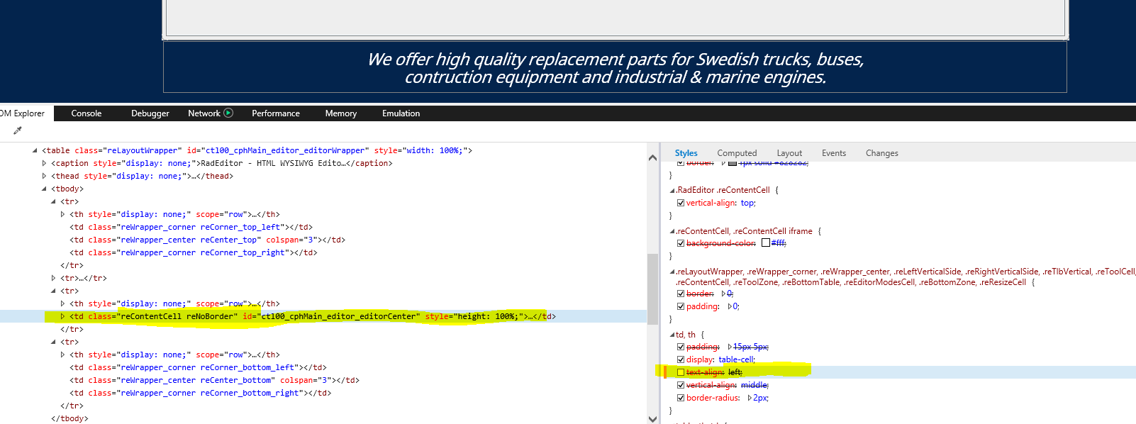 I have a problem where the content in the editor breaks its formatting when its Enabled (in edit mode) i have a parent div with the class "center" that sets the text alignment and the editor shows the content correctly when Enabled is set to False (view mode), but as soon as its in edit mode it aligns the content to the Left.