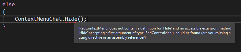 The list.Parent.Hide (or set Visible=false) only hides the drop down menu, not the overall context menu. list.Parent.Parent returns null. Any and all help is appreciated! Thanks