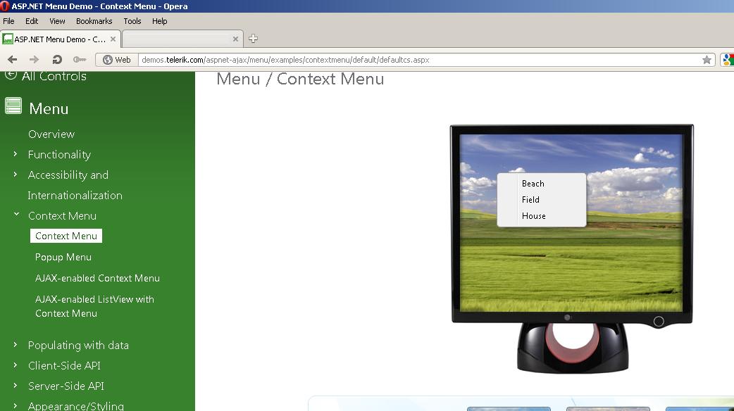 i have problems with the context menu and the Opera Browser. In all other Browser IE or FireFox the context menu will be shown correctly only in Opera ( I testes 9.63 and 10.x) the standard Opera context menu will be shown and not the rad context menu.