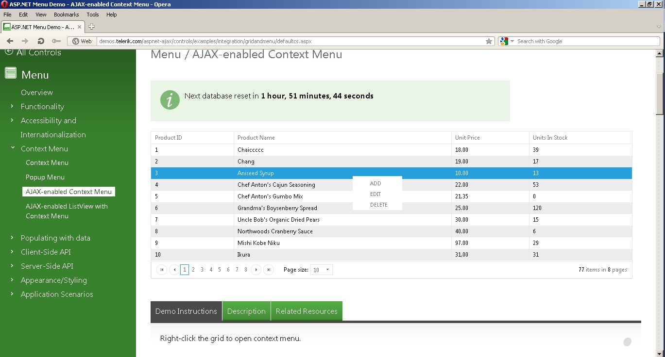 UPDATE: I also tested your context menu demo containing a RadGrid (DEMO) and I dont have the issue at all in my Opera, as illustrated in "screen3.jpg".