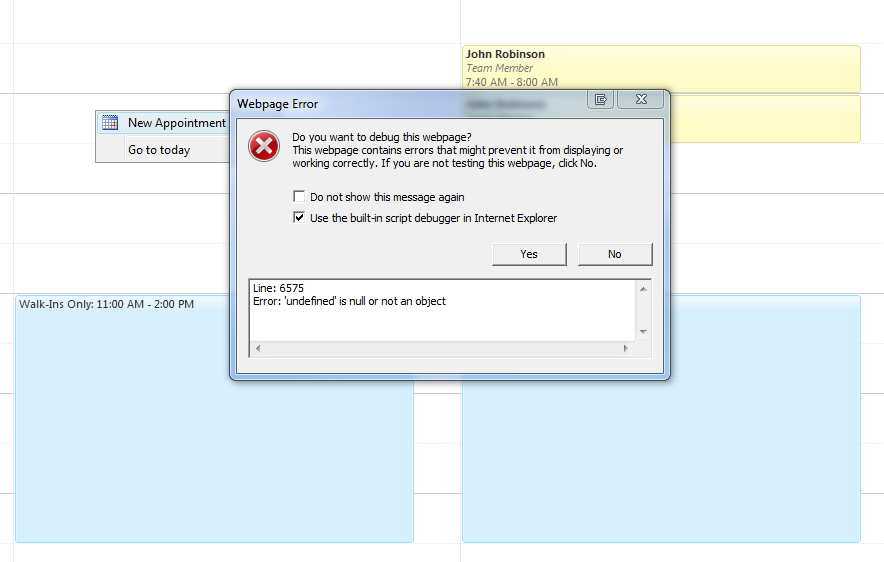 The reason for that error is that new Appointment cannot be created because the timeslot in which the context menu shows cannot be found. We need to edit the code and use _showTimeSlotContextMenu private method: