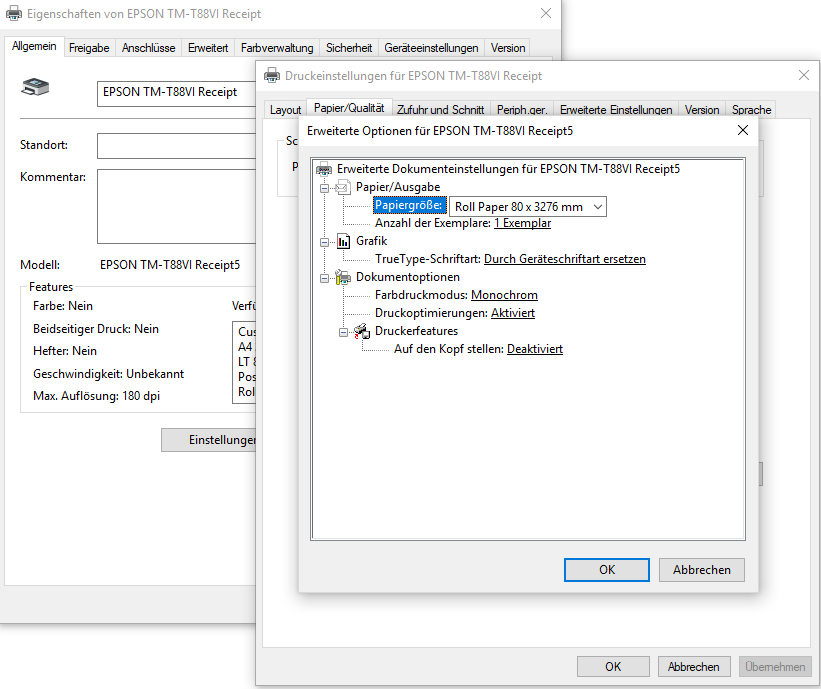 for all examples i used a Epson TM-T88VI with newest epson windows drivers, default papersize is set to Roll Paper 80 x 3276 mm