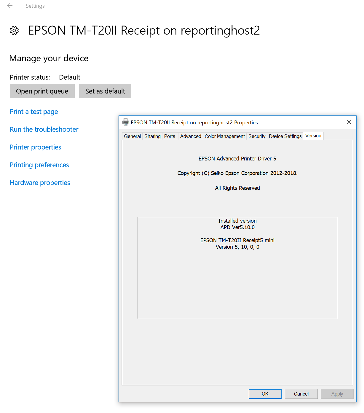 So, the driver on my side is the one attached as a screenshot. I found it available here: https://epson.com/Support/Point-of-Sale/Thermal-Printers/Epson-TM-T20II/s/SPT_C31CD52062 - Advanced Printer Driver v5.10. It does print pretty fast actually - the prints from my previous reply take about a second. Can you give this a try, if possible?