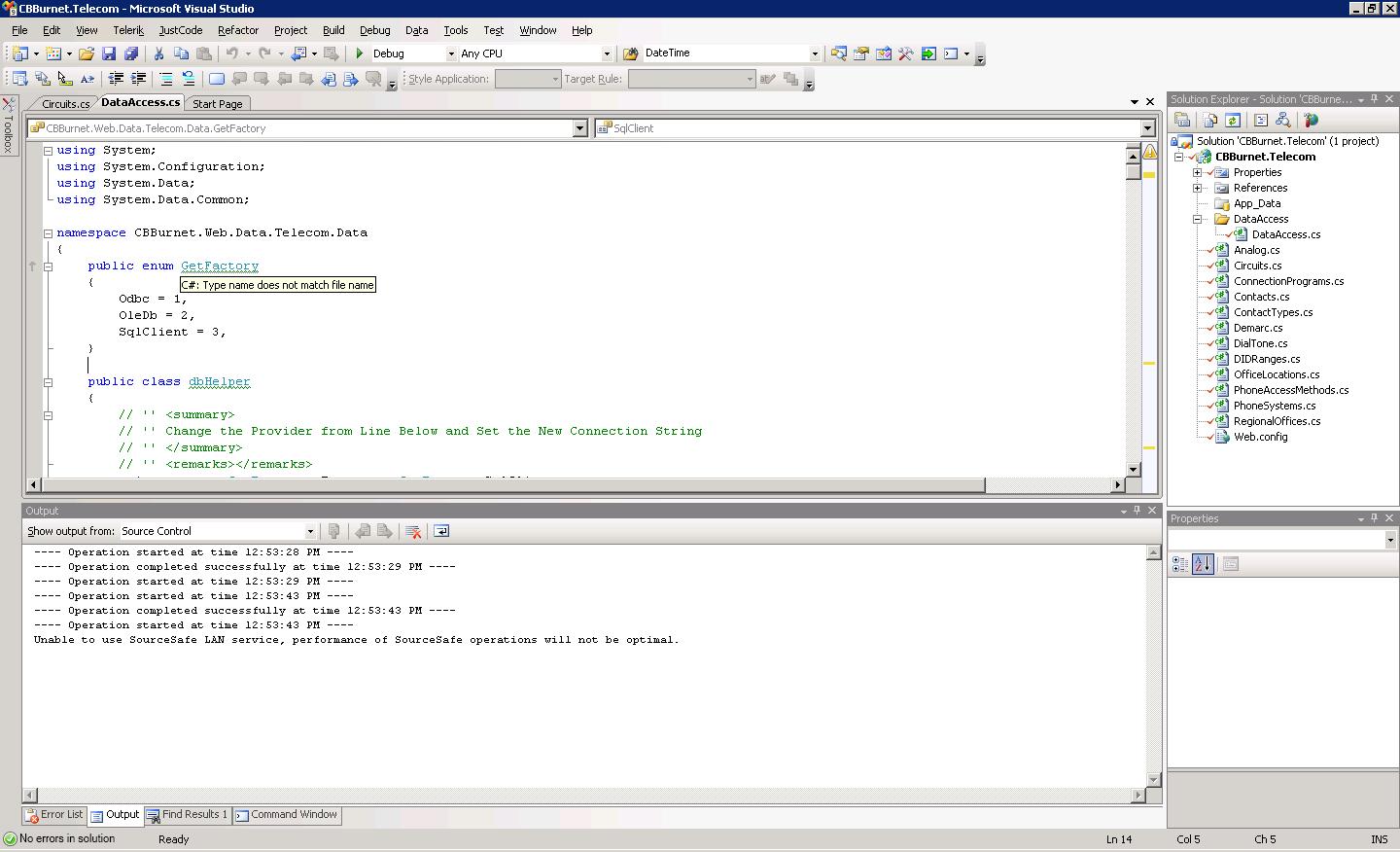 Thank you for taking the time to track this problem. We will be waiting patiently for more info that you could provide on the subject. One thing that you could try very quickly is to try and refresh the code analysis manually - choose from JustCode's menu "Refresh Code Analysis". This will trigger a total refresh of the code analysis for the whole solution. For large solutions this could take several seconds to reanalyze everything. See if the error still persists after the progress has finished.
