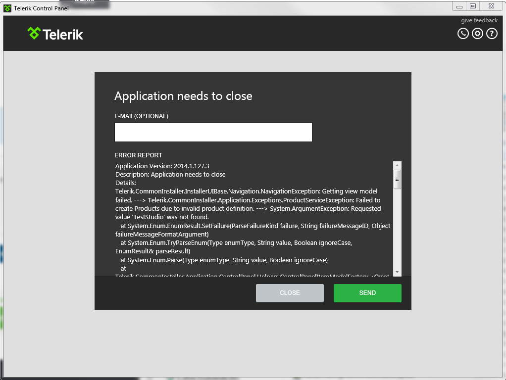 I tried to install TelerikControlPanelSetup_2013_4_1327.exe and get following error.