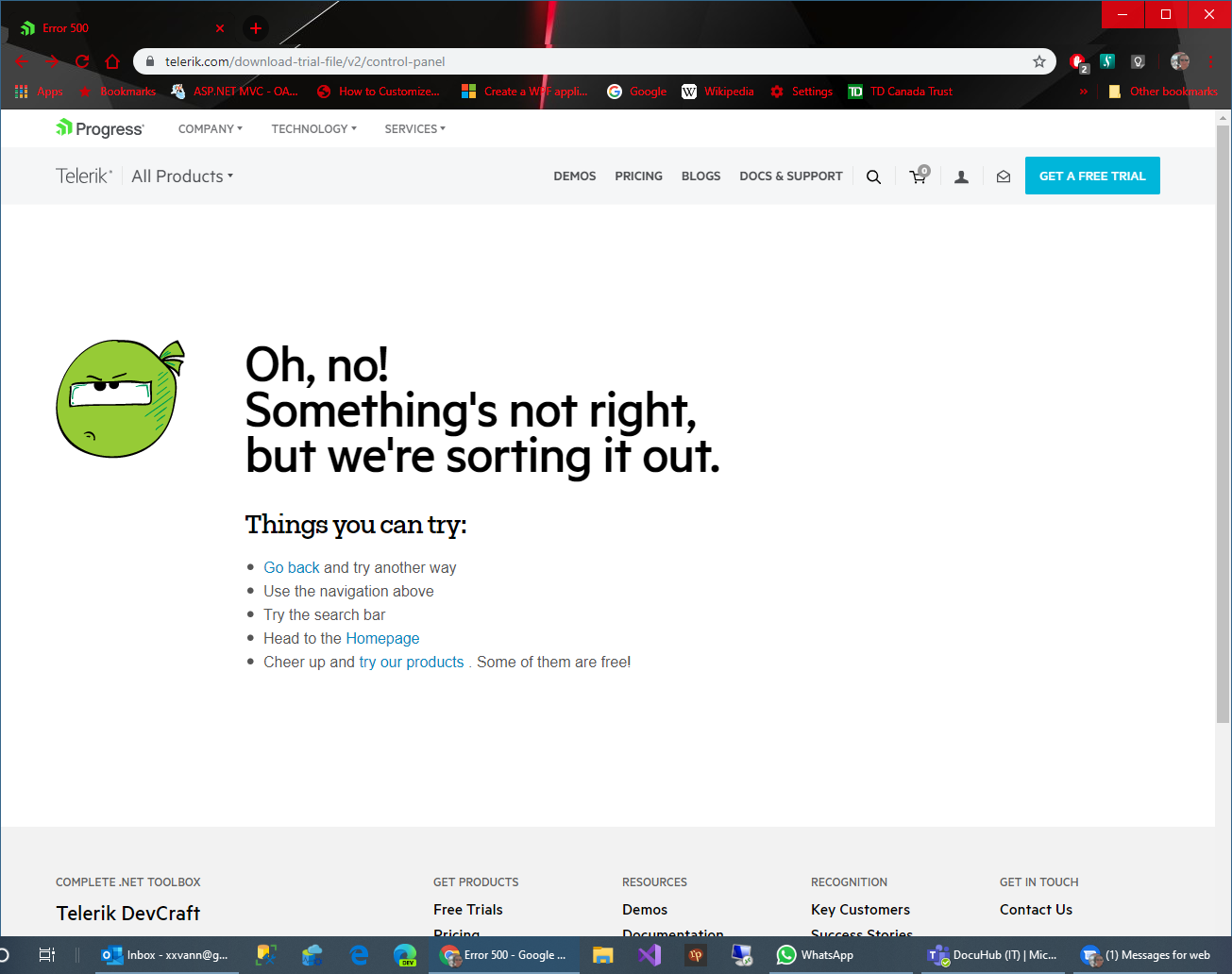 We have experienced some issues with the Progress Control Panel download link during the weekend. However, it is fixed now and the Control Panel should be successfully downloaded again. I have updated your account with 500 Telerik points for your efforts in reporting it to us.