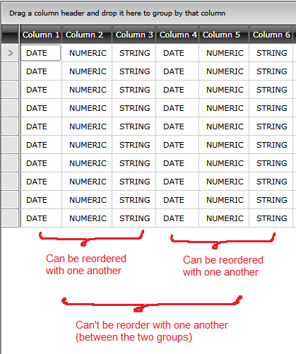 for example - i have six columns and i want to enable the user to reorder a column from the first 3 columns only between the first 3 columns and a column from the last 3 columns to be ordered only between the last 3 columns.