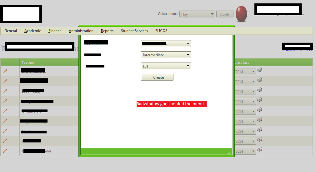 This is issue is occurs because of the Z-index problem of RadMenu.You need to set a higher z-index value to other control than RadMenu z-index value. Please have a look into the sample code snippet which works fine at my end.
