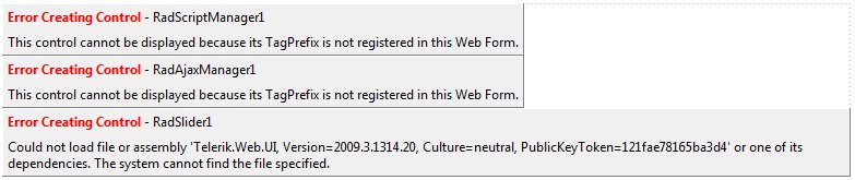 So I was doing the tutorials when I needed to reset my computer... afterwards I cannot get the controls to work on a page. THe attached screenshot is all I get any help please? I had to readd the controls manually to the toolbox and I tried reinstalling as well... any help?