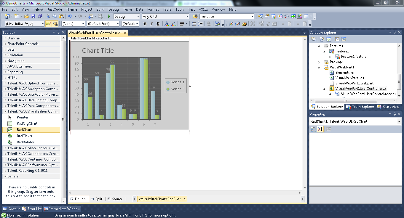 From your screenshot, it appears that you're attempting to integrate a RadChart as part of a VisualWebPartUserControl in SharePoint, correct?