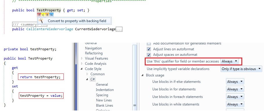 I mostly need to convert the Property to a property with backing field when a property changed notification is required and I have to add it manually. Perhaps the function could be improved in this way (by an option) that when the class implement INotifyPropertyChanged, a code piece like this