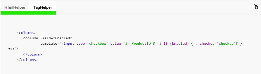 columns.Bound(p => p.Id).Title("Act").Width(90).Filterable(false)