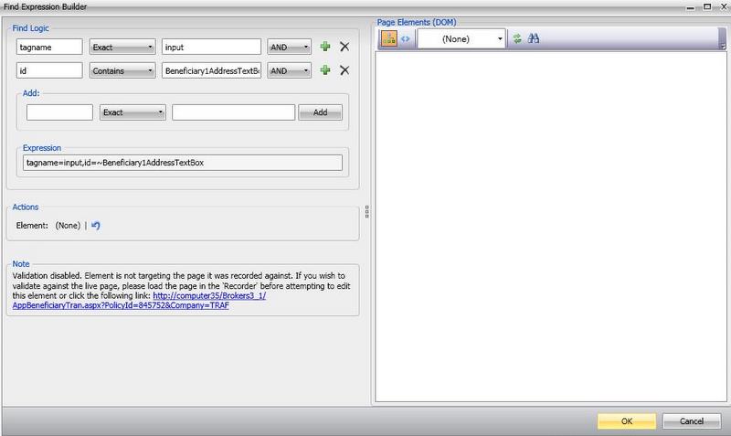 One question while I'm in the trenches though: is there a way to change the find logic globally for a project (other than the priority-level changes found in the project settings)? What I find myself doing right now is going to each element in the DOM explorer and changing each "id exact" to an "id contains". While it's nice that this need only be done per project and not per test, it's still rather cumbersome. It'd be nice if there was a way in the QA edition to persist the change to the whole project at once. If there is a way and I'm just missing it, I'd appreciate being set straight. Otherwise, it might turn into a feature request. :)