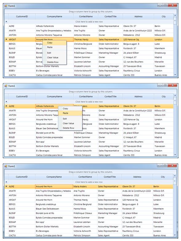 I have been looking for an example of how I can copy from a cell/row and past it to other cells/rows.