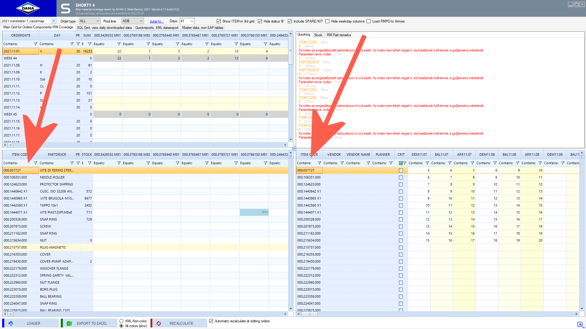 With other words, if i sort by 'STOCK' for example on the left grid (rgv_RAWMAT) then it will result a kinda random ordering in the