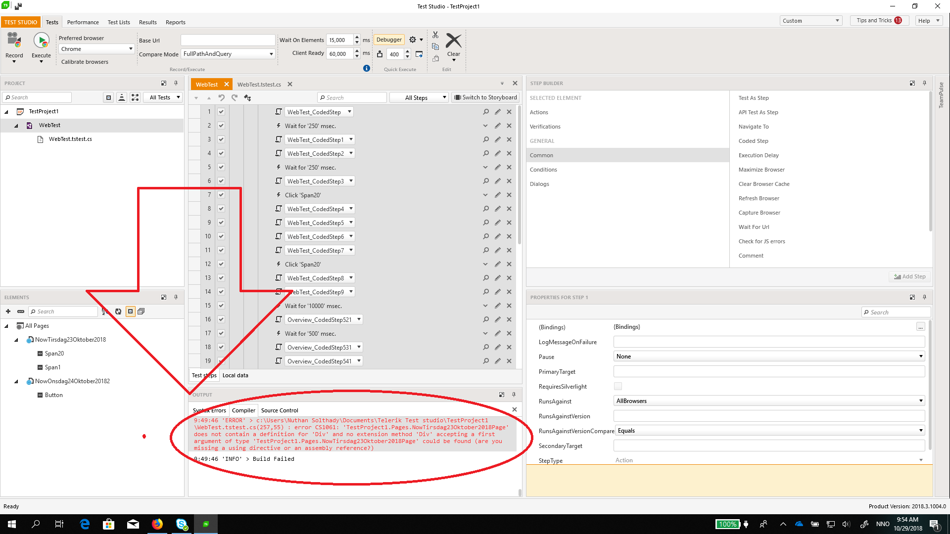 The reason why the compilation error didn't appear in the initial project, is that the elements exist in the repository and can be used although they are associated with other steps.