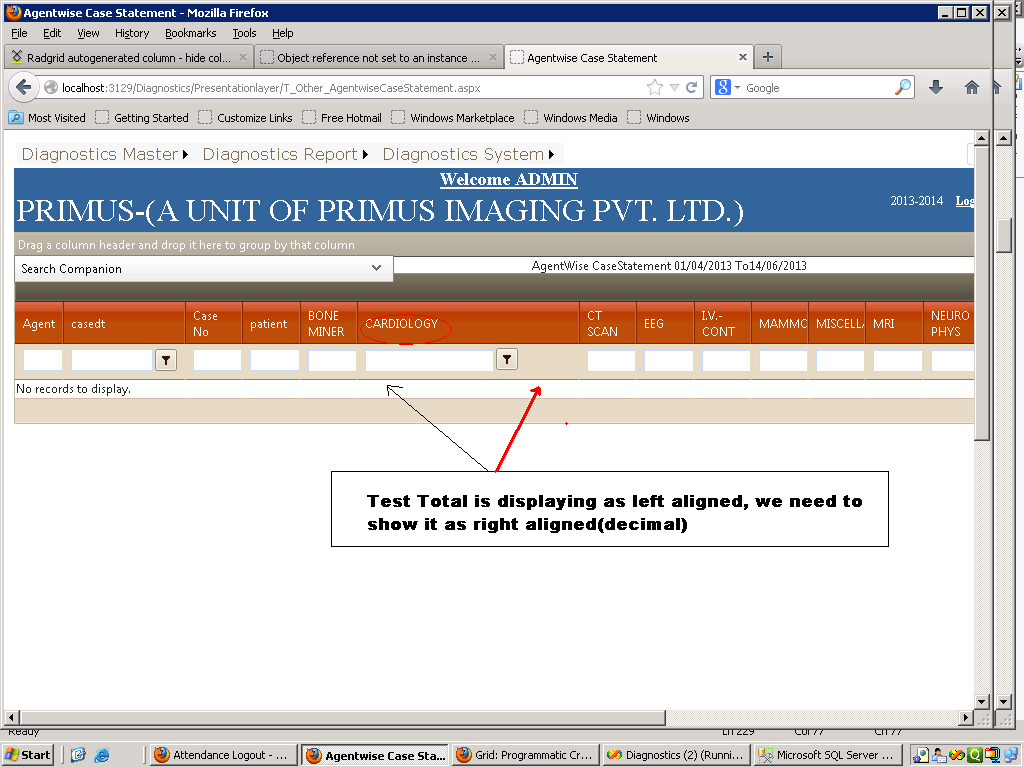 Now I want hide one column. How can I achieve this through code behind. When I put following line of code in Grid PreRender, ColumnCreated, Page Prerender Completed event events it is throughing exception like: