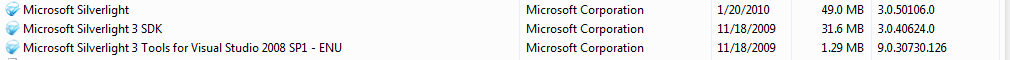 1. Visual Studio 2008 SP 1 (ver: 9.0.30729.1)