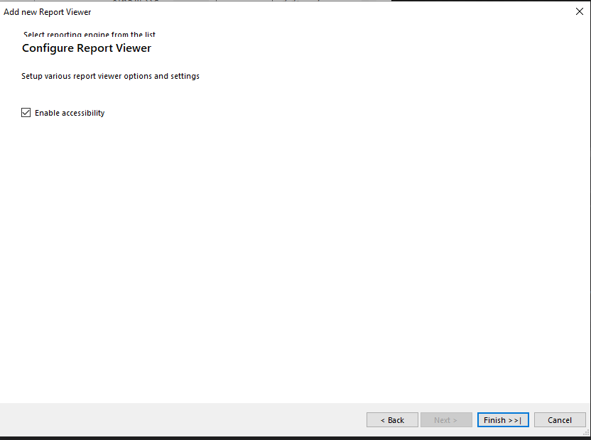 6/ I checked the enable accessibility checkbox and I clicked on finish. ( reportviewer3.png)