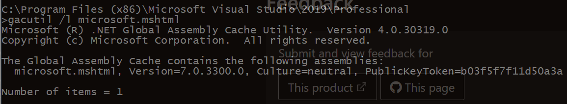 - With the Developer Command Prompt open, execute gacutil /l microsoft.mshtml and it should display Number of items = 0.