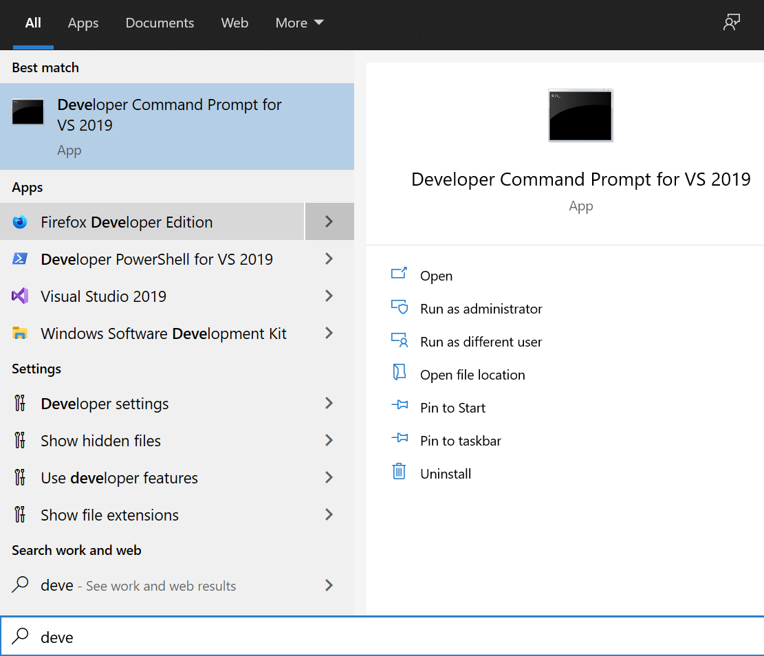 Step 3 - If the error still appears, then the final option is to install the Microsoft.mshtml assembly in the GAC. To do this use the gacutil.exe included with the Developer Commnad Prompt for VS 2019. See the following screenshot for a visual reference.