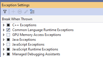 Tom, Thank you for the sample project. Indeed, if the "Common Language Runtime Exceptions" are enabled, it is possible to experience such a behavior: