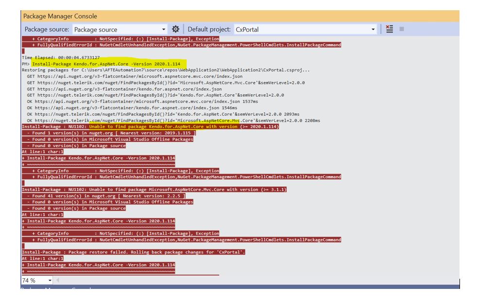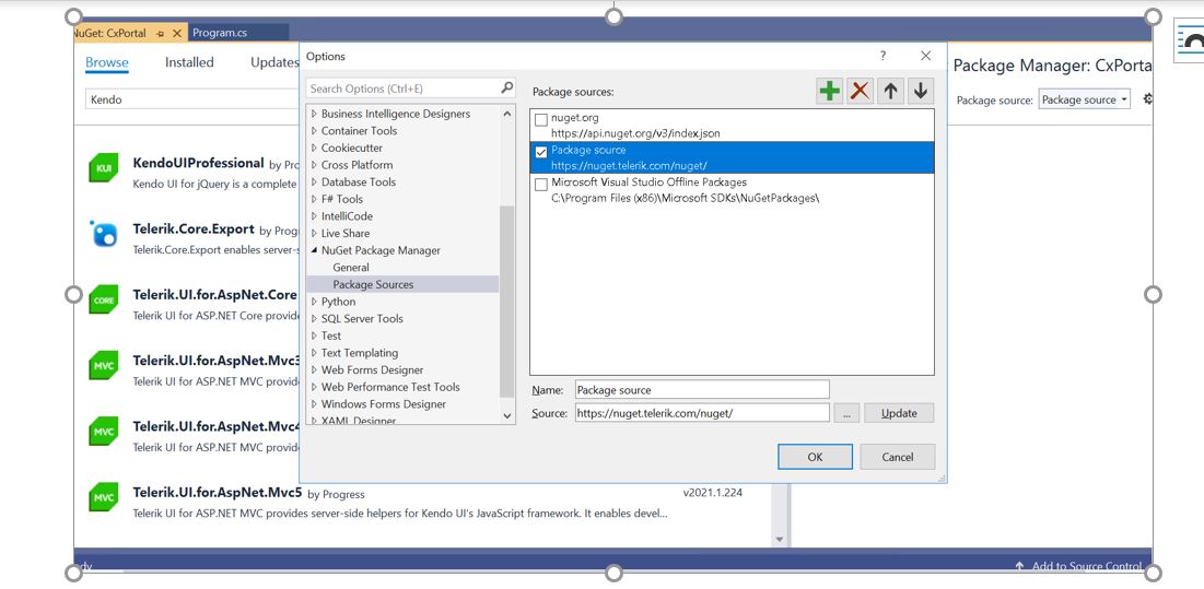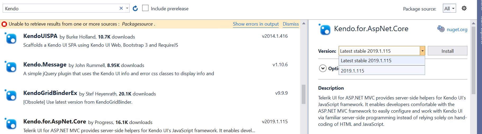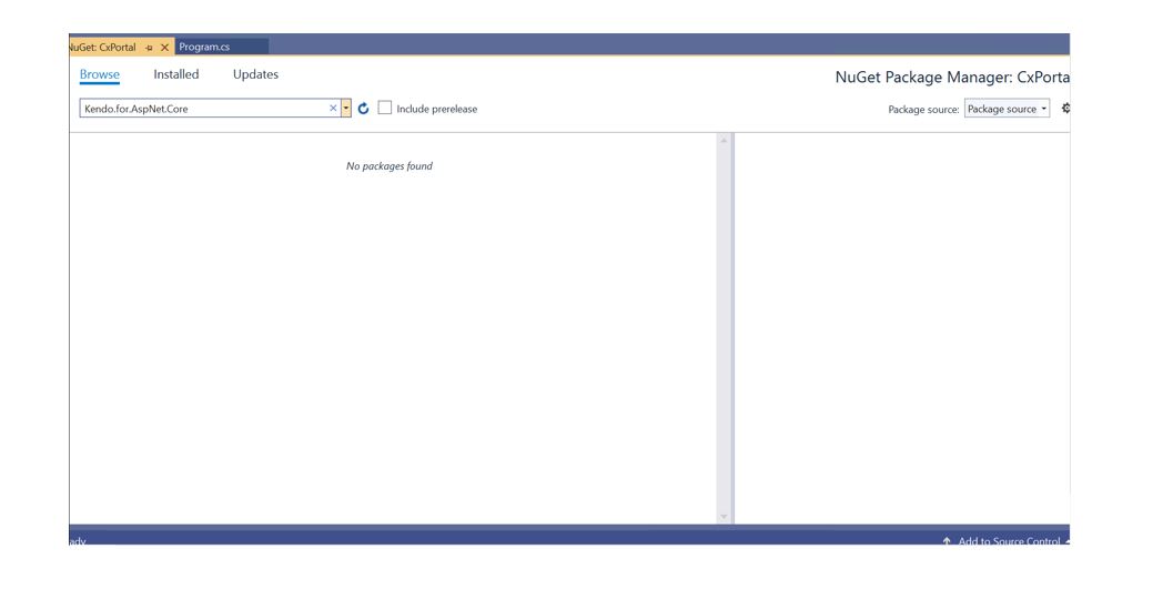 - Typed Telerik.UI into nuget search and installed Kendo.for.AspNet.Core. That is the only component available to me?