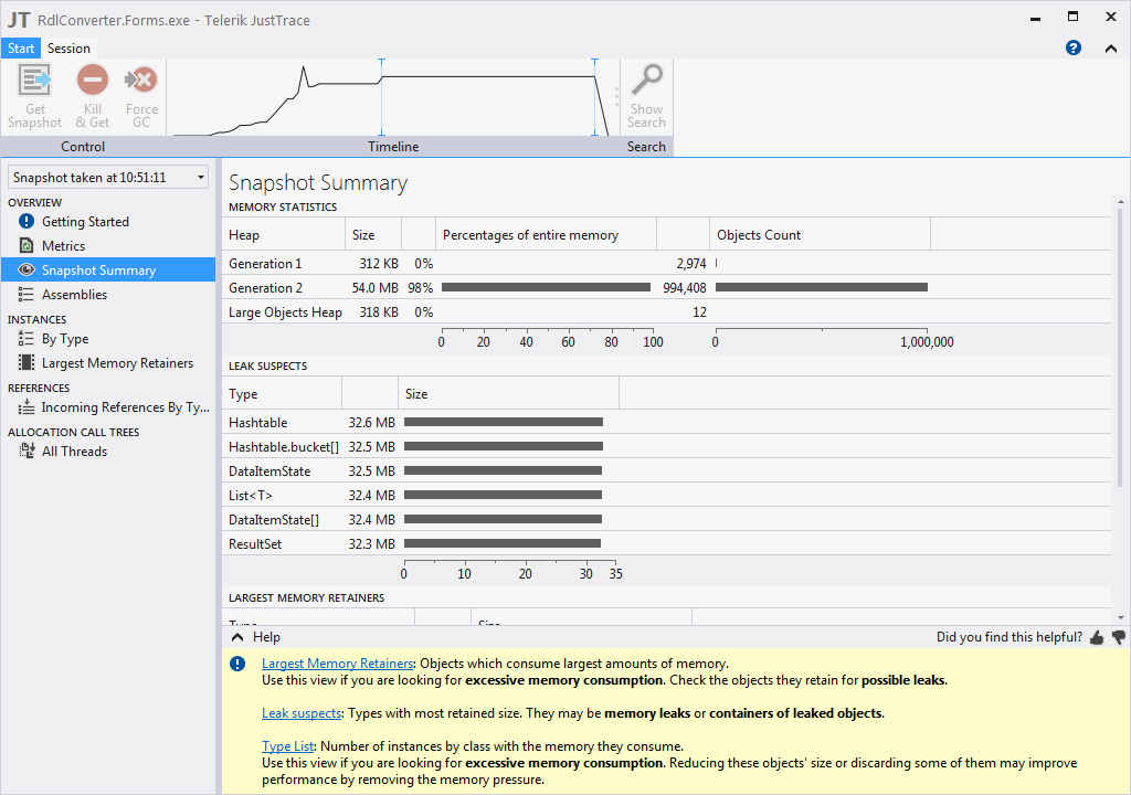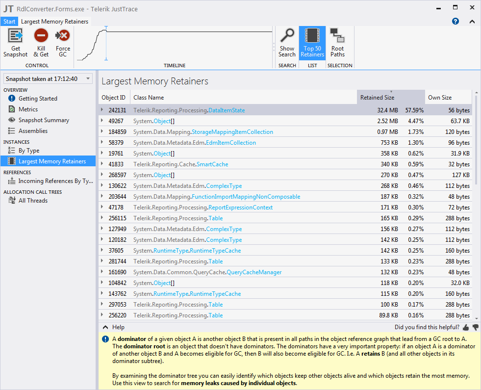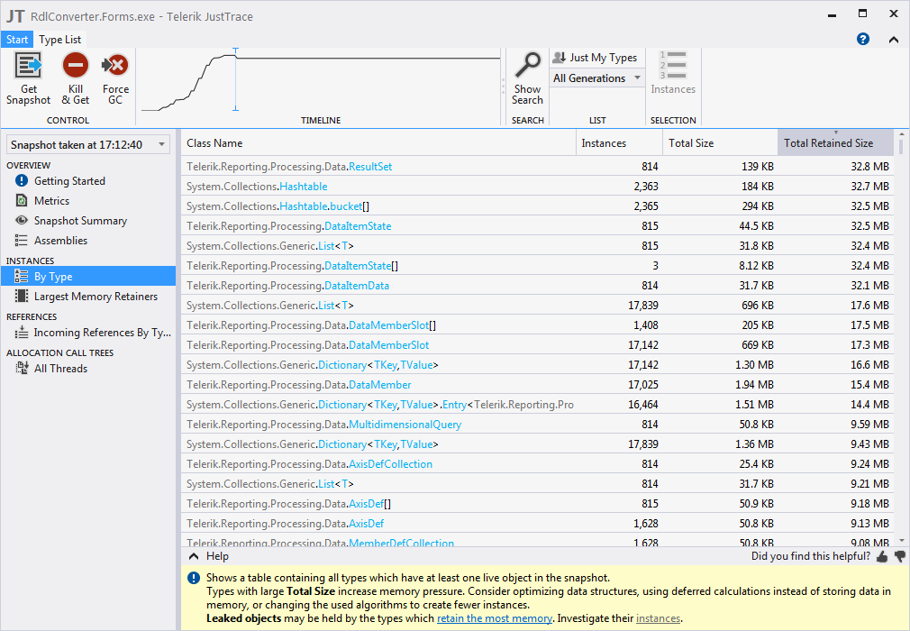 What are my options to strip down the excessive "Total Allocated Instances" and cleanup the Memory retained by the DataMember off of the Panel within the Table.