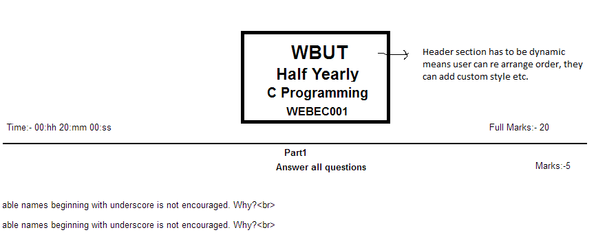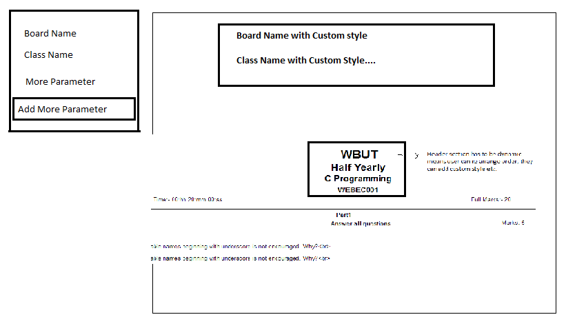 In my application I have to generate paper setter for online and offline test. I have done that so far quite easily, now my requirement is to create a dynamic template, so that while I print report it should fill all data inside created template.
