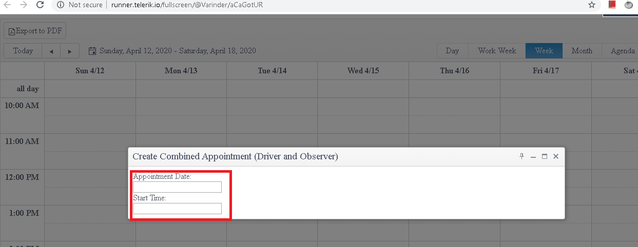 Similarly, If user right clicks on any cell of 18th date of scheduler at 01 pm then text boxes should get filled with 18-04-2020 and 01:00 pm respectively and so on.