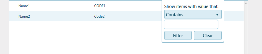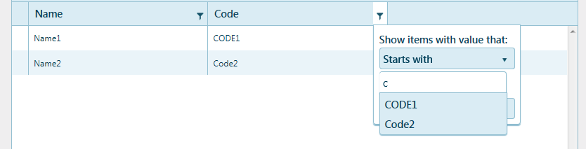{ field: "Code", title: "Code", filterable: {